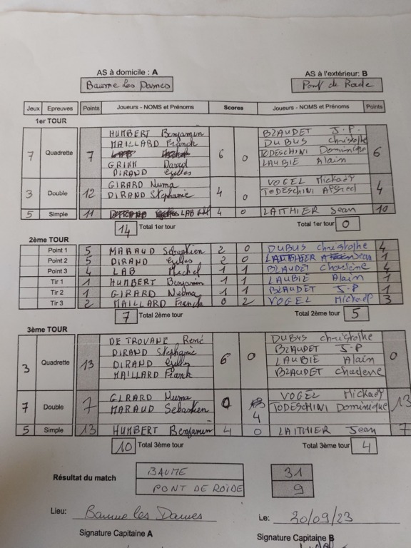 ASMB 2 / BEAULIEU 25-15 BAUME LES DAMES / PONT DE ROIDE 31-9